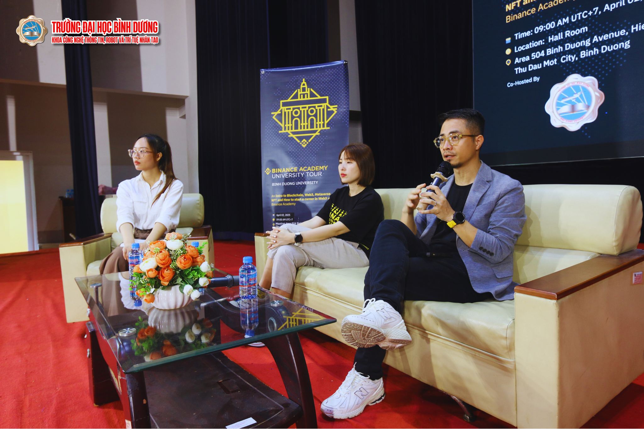 Các bạn sinh viên đã cùng các chuyên gia giàu kinh nghiệm đến từ Binance Academy trao đổi, hỏi - đáp với nội dung xoay quanh những công nghệ mới, những cơ hội và thách thức của giới trẻ khi đứng trước sự phát triển của công nghệ. Qua đó, các bạn sinh viên đam mê lĩnh vực khoa học công nghệ đã nắm bắt được nhiều thông tin quan trọng, bổ sung vào hành trang nghề nghiệp cho bản thân trước khi tốt nghiệp.