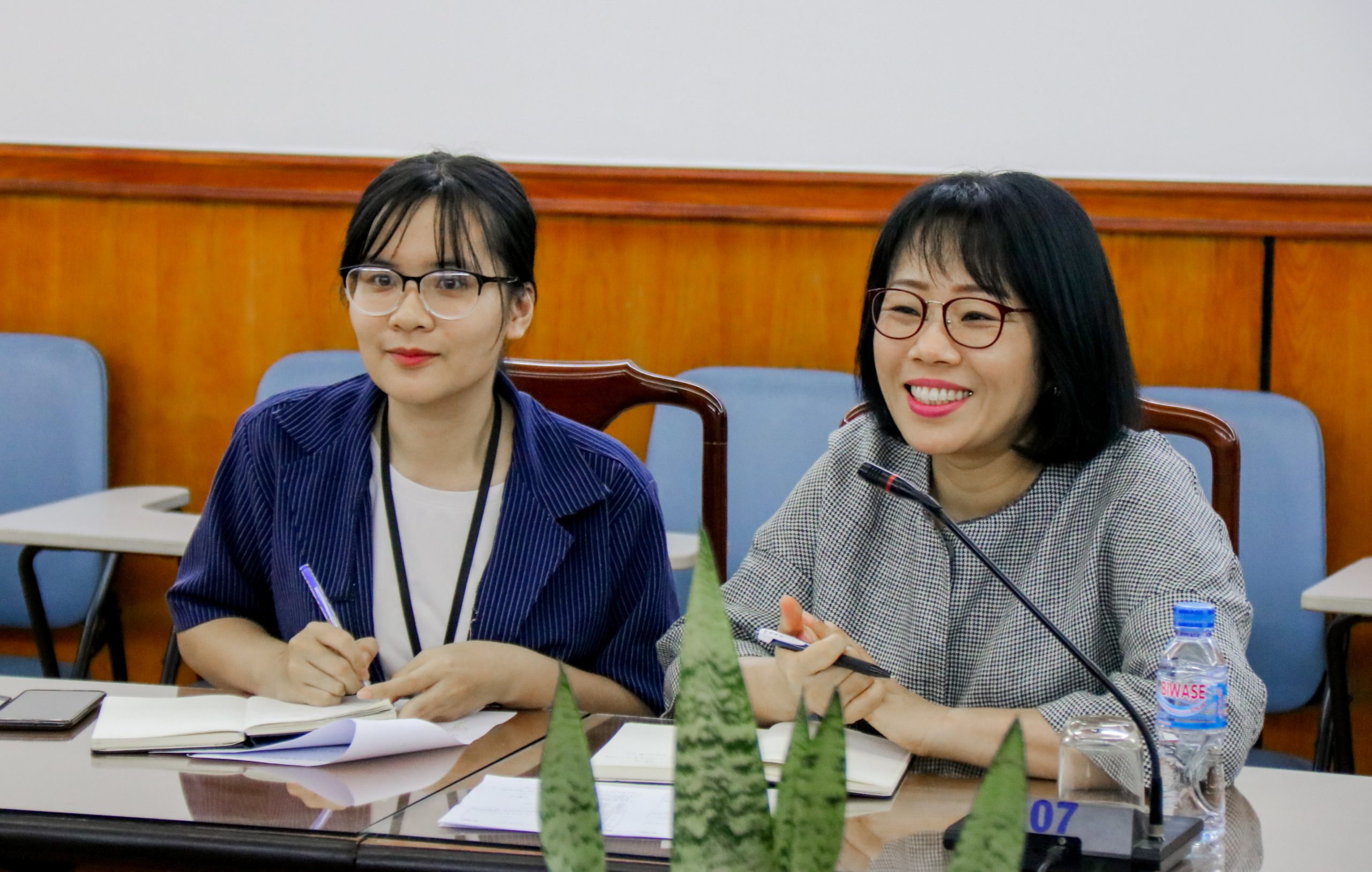 Bà Kim Hye Jung (bên phải) phát biểu