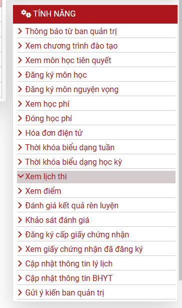 Bước 1. Sinh viên đăng nhập Cổng thông tin sinh viên chọn chức năng Xem lịch thi