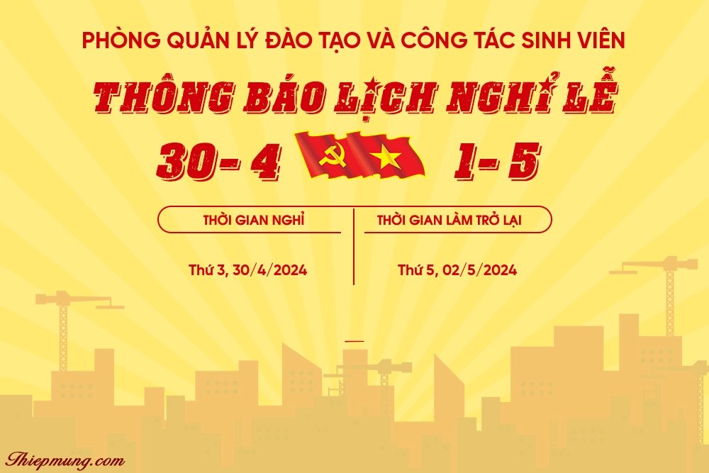 Thông báo thời gian nghỉ Lễ 30/4 và 01/5 của Học viên, Sinh viên
