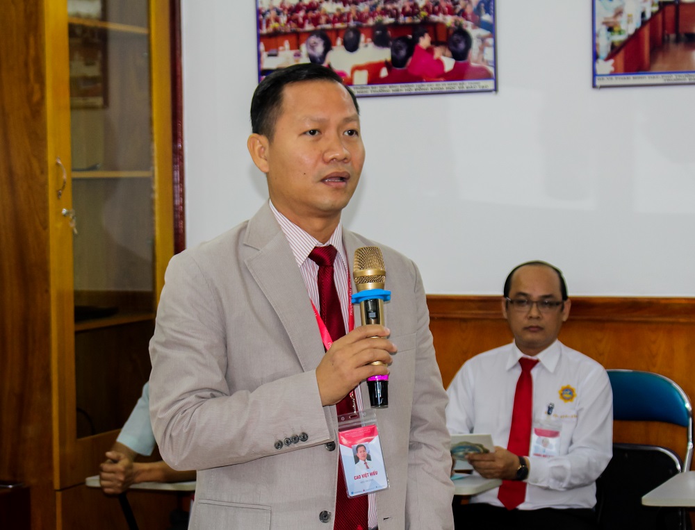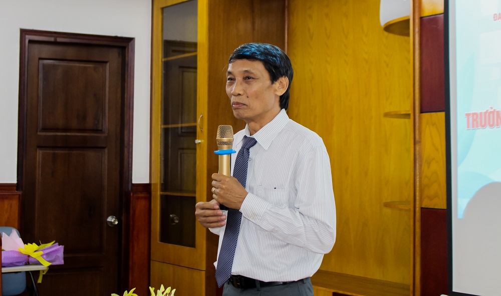 Ông Nguyễn Thành Trí – Hiệu trưởng Trường Cao đẳng Việt Nam – Hàn Quốc Bình Dương phát biểu trong chương trình