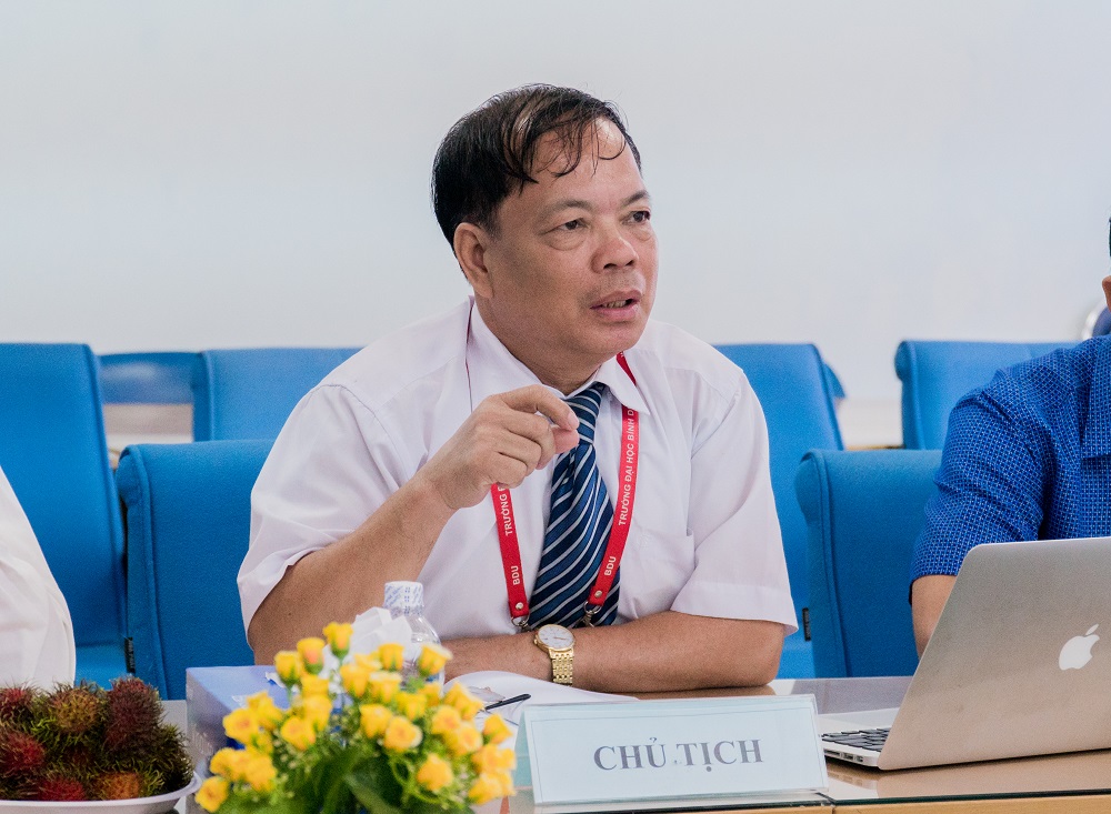 Tham dự Hội đồng nghiệm thu có PGS.TS Lê Văn Cường – Phó Hiệu trưởng Trường Đại học Bình Dương làm Chủ tịch; TS. Hồ Đức Chung – Sở Thông tin & Truyền thông Bình Dương làm phản biện 1; ThS. Phan Đình Duy – Trường Đại học Công nghệ Thông tin Tp.HCM làm phản biện 2; ThS. Hà Hoàng Hiếu – Phó Trường phòng Quản lý khoa học và Quan hệ đối ngoại Nhà trường làm thư ký.